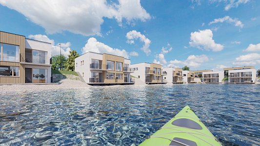 Apartmánové domy situované priamo na brehu jazera. Dispozične ich tvoria dva 2 izbové apartmány, jeden na 1.nadzemnom a druhý na 2.nadzemnom podlaží. S rozlohou 65,10 m² a 51,13 m² vám každý z apartmánov ponúka kuchyňu spojenú s obývacou miestnosťou, spálňu a kúpelňu.